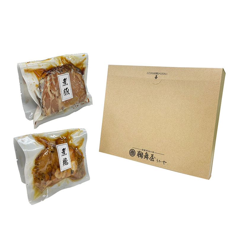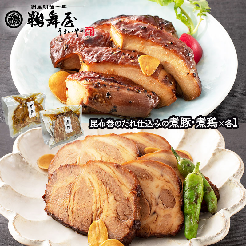 【メール便対応】 鵜舞屋 昆布巻のたれ仕込みの煮豚・煮鶏 ( 煮豚×1袋 煮鶏×1袋 ) UMNBT-4